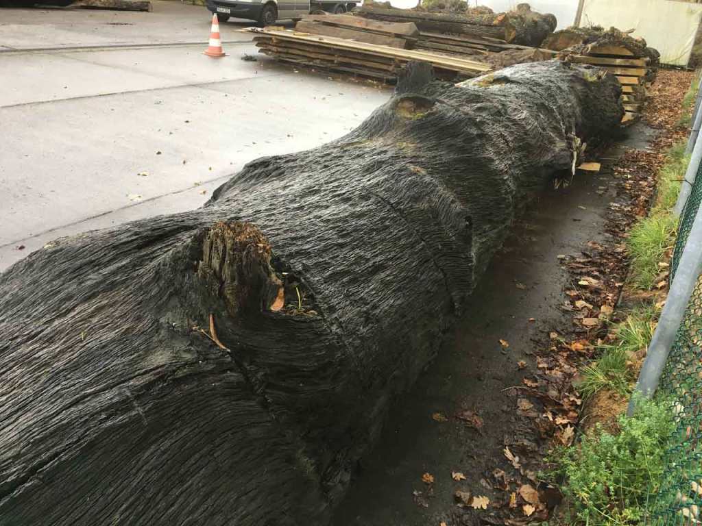 Nachdem ein solcher Mooreiche-Stamm geborgen ist, beginnt der schwierigste Teil der Weiterverarbeitung. Die Herausforderung besteht darin, einen komplett mit Wasser getränkten Stamm zu trocknen, ohne, dass sich das Holz dabei spaltet oder es reißt. Gemeinsam mit der forstwirtschaftlichen Fakultät wurde ein Trocknungs-und Belüftungssystem entwickelt, dass in einer Halle installiert wurde, in der die Stämme gelagert werden. Die Trocknung von Mooreiche ist nichts für Ungeduldige. Je nach Dicke des Stamms dauert eine komplette Durchtrocknung drei bis fünf Jahre.