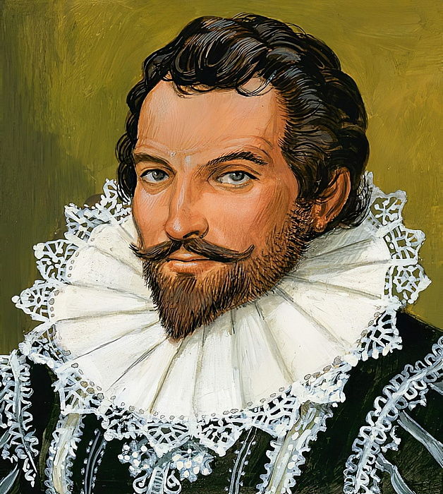 Unter den Freibeutern und wagemutigen Kapitänen, die die englische Königin umgaben, fand sich auch ein Mann mit hohen Ambitionen, scharfem Verstand…und schneidigem Aussehen. Kein Wunder, dass bei Hofe die Gerüchte um gingen, dieser ebenso gut aussehende, wie gefährliche Pirat hätte etwas mit der unverheirateten Königin. Wie auch immer, Elisabeth übertrug , nach dem Tod von Kapitän Gilbert, die Patentbriefe auf eben diesen Mann,Walter Raleigh.