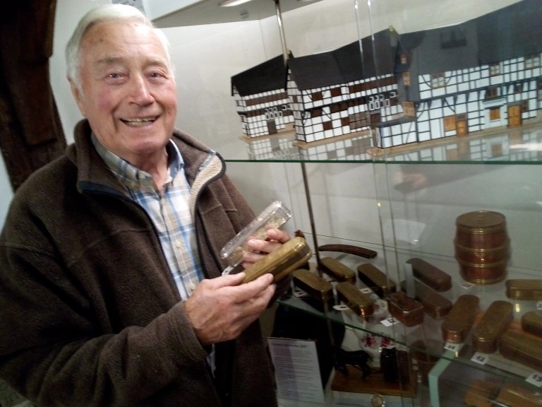 Für den „Tobaktrinker“, der aber zum Ende des 16.Jahrhunderts der neuen Leidenschaft frönte und sein Lieblingskraut beim Krämer oder gar Apotheker erstand, ergab sich ein Problem. Daheim, in der guten Stube, füllte er die erworbene Kostbarkeit in Steingut-oder Tontöpfe um, gern reich bemalt und verziert-ein Schmuck für das Heim. Was aber nun, wenn er auswärts zu rauchen gedachte? Den Tabak in ein Tuch füllen, verschnüren und als Säckchen mit sich tragen? Wie stillos!